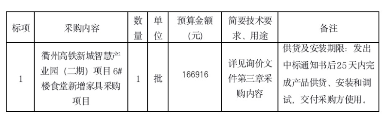 附件:衢州高鐵新城智慧產(chǎn)業(yè)園(二期)項(xiàng)目6#樓食堂新增家具采購項(xiàng)目