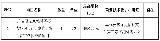 項目名稱:廣告及站點站牌等標志標識設計、制作、安裝定點供應商項目