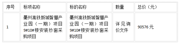 二、項目名稱:衢州高鐵新城智慧產(chǎn)業(yè)園(一期)項目9#10#樓安裝紗窗采購項目