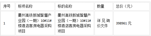 二、項目名稱:衢州高鐵新城智慧產(chǎn)業(yè)園(一期)10#11#樓酒店客房電器采購項目