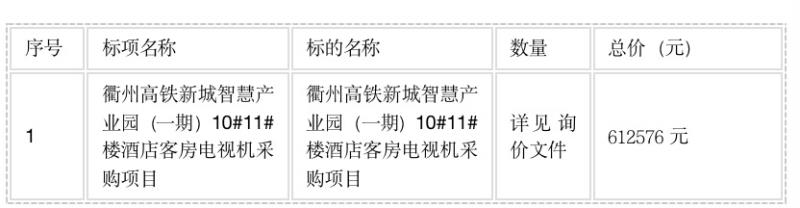 二、項目名稱:衢州高鐵新城智慧產(chǎn)業(yè)園(一期)10#11#樓酒店客房電視機采購項目