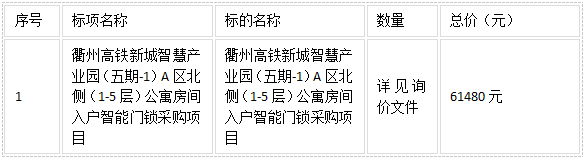 二、項(xiàng)目名稱:衢州高鐵新城智慧產(chǎn)業(yè)園(五期-1)A區(qū)北側(cè)(1-5層)公寓房間入戶智能門鎖采購項(xiàng)目