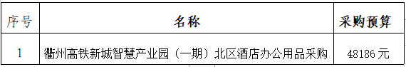 一、采購項(xiàng)目名稱:衢州高鐵新城智慧產(chǎn)業(yè)園(一期)北區(qū)酒店辦公用品采購。