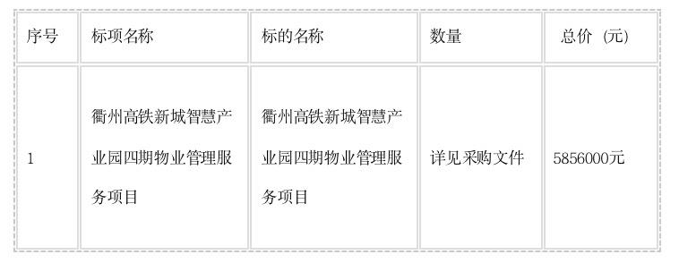 二、項目名稱:衢州高鐵新城智慧產業(yè)園四期物業(yè)管理服務項目
