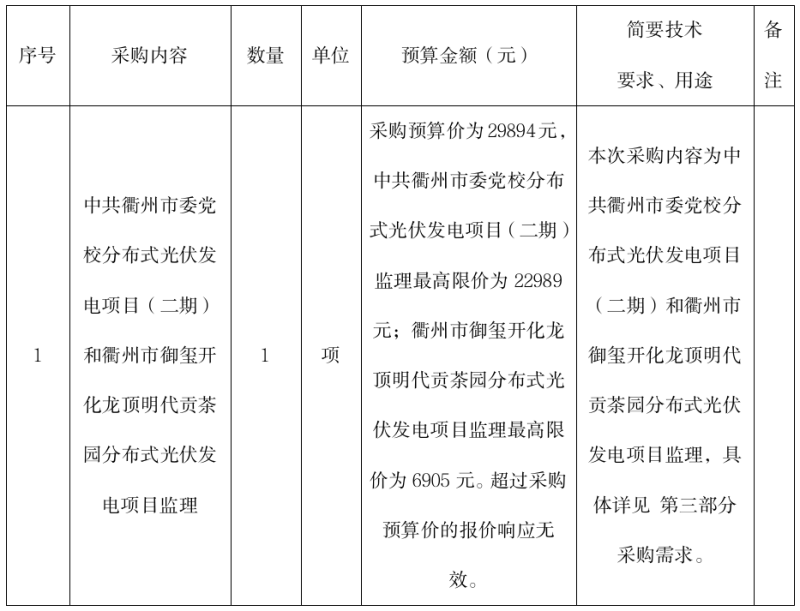 中共衢州市委黨校分布式光伏發(fā)電項(xiàng)目(二期)和衢州市御璽開化龍頂明代貢茶園分布式光伏發(fā)電項(xiàng)目監(jiān)理的詢價(jià)公告(非政府采購)