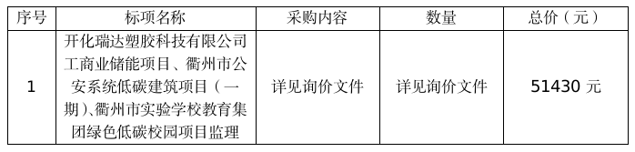 開化瑞達塑膠科技有限公司工商業(yè)儲能項目、衢州市公安系統(tǒng)低碳建筑項目(一期)、衢州市實驗學校教育集團綠色低碳校園項目監(jiān)理中標結(jié)果公告(非政府采購)