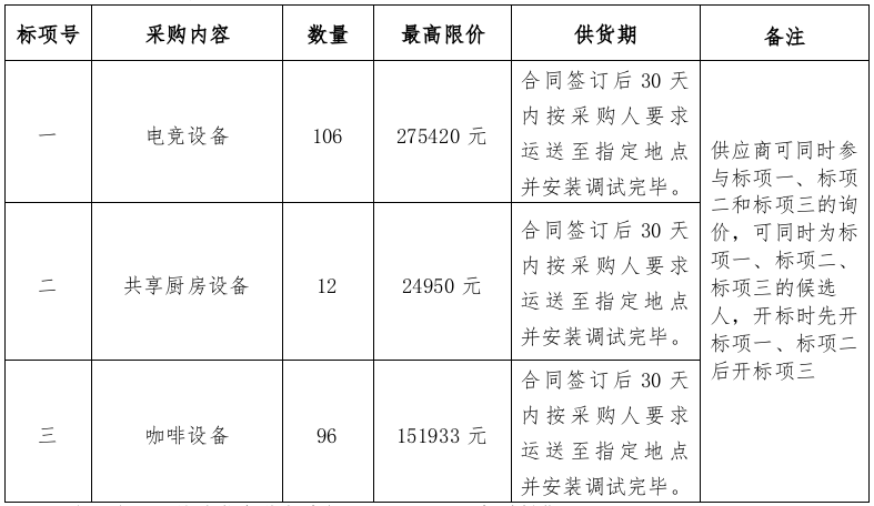 注:本項目的詢價文件須分標項一、二、三分別制作。