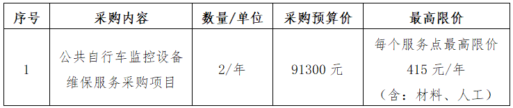 二、項(xiàng)目名稱:公共自行車監(jiān)控設(shè)備維保服務(wù)采購項(xiàng)目