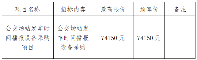 受浙江衢州公交集團(tuán)有限公司委托,現(xiàn)就公交場站發(fā)車時(shí)間播報(bào)設(shè)備采購項(xiàng)目進(jìn)行采購。本項(xiàng)目以詢價(jià)方式進(jìn)行采購,歡迎合格的供應(yīng)商參加。