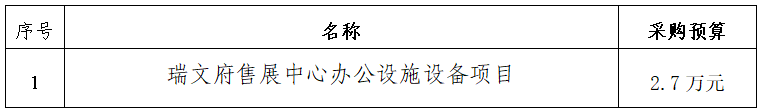 一、采購(gòu)項(xiàng)目名稱:瑞文府售展中心辦公設(shè)施設(shè)備項(xiàng)目