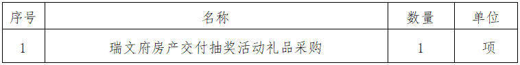 一、采購項(xiàng)目名稱:瑞文府房產(chǎn)交付抽獎(jiǎng)活動(dòng)禮品采購