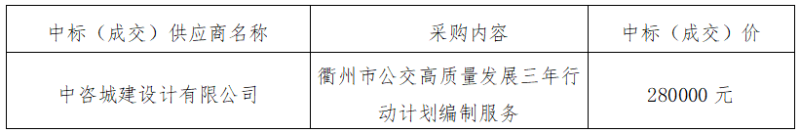 五、采購內(nèi)容:衢州市公交高質(zhì)量發(fā)展三年行動計劃編制服務(wù)(具體詳見競爭性磋商文件)。