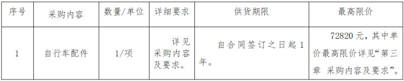 二、項(xiàng)目名稱:衢州通達(dá)公共自行車服務(wù)有限公司自行車配件采購(gòu)項(xiàng)目