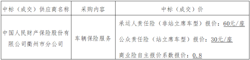 三、標項名稱:浙江衢州公交集團有限公司車輛保險服務(wù)采購項目