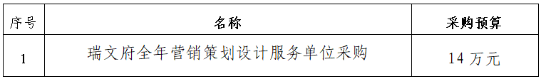 一、采購項目名稱:瑞文府全年營銷策劃設(shè)計服務(wù)單位采購詢價項目