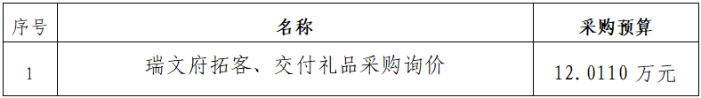 一、采購項目名稱:瑞文府拓客、交付禮品采購詢價項目