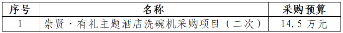 一、采購(gòu)項(xiàng)目名稱:崇賢·有禮主題酒店洗碗機(jī)采購(gòu)項(xiàng)目(二次)