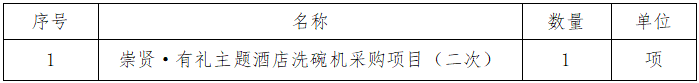 一、采購項目名稱:崇賢·有禮主題酒店洗碗機(jī)采購項目(二次)