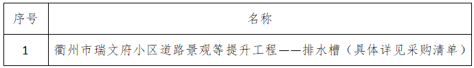 一、采購項目名稱:衢州市瑞文府小區(qū)道路景觀等提升工程——排水槽