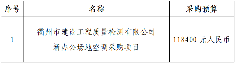 一、項目名稱:衢州市建設工程質量檢測有限公司新辦公場地空調采購項目
