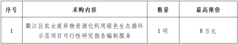 參照《衢州市國有企業(yè)采購管理辦法(試行)》等有關(guān)規(guī)定,以公開詢價(jià)方式對衢江區(qū)農(nóng)業(yè)廢棄物資源化利用綠色生態(tài)循環(huán)示范項(xiàng)目可行性研究報(bào)告編制服務(wù)進(jìn)行詢價(jià)采購,歡迎合格的供應(yīng)商參加。