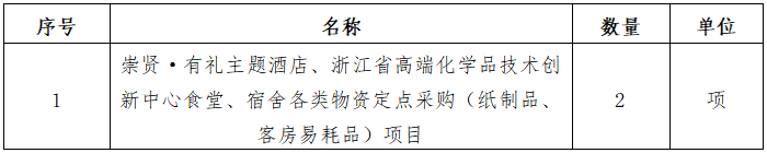 一、采購項(xiàng)目名稱:崇賢·有禮主題酒店、浙江省高端化學(xué)品技術(shù)創(chuàng)新中心食堂、宿舍各類物資定點(diǎn)采購(紙制品、客房易耗品)項(xiàng)目