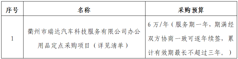 一、項目名稱:衢州市瑞達汽車科技服務有限公司辦公用品定點采購項目