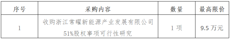 二、項(xiàng)目名稱:收購(gòu)浙江常曜新能源產(chǎn)業(yè)發(fā)展有限公司51%股權(quán)事項(xiàng)可行性研究