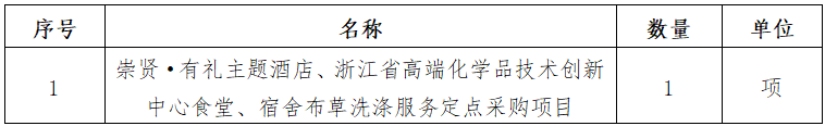 一、采購項目名稱:崇賢·有禮主題酒店、浙江省高端化學(xué)品技術(shù)創(chuàng)新中心食堂、宿舍布草洗滌服務(wù)定點采購項目