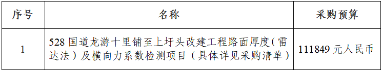 根據(jù)《衢州市市屬國有企業(yè)采購管理辦法(試行)》規(guī)定,以公開詢價方式對528國道龍游十里鋪至上圩頭改建工程路面厚度(雷達法)及橫向力系數(shù)檢測項目進行采購,歡迎合格的供應商參加。