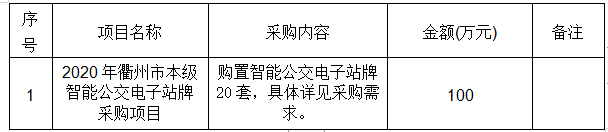 參照《中華人民共和國政府采購法》、《政府采購貨物和服務(wù)招標(biāo)投標(biāo)管理辦法》等規(guī)定,浙江中信工程咨詢有限公司受浙江衢州公交集團(tuán)有限公司委托,就2020年衢州市本級智能公交電子站牌采購項(xiàng)目進(jìn)行公開招標(biāo)采購,歡迎國內(nèi)合格的供應(yīng)商前來投標(biāo)。