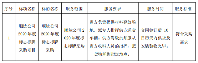 二、項(xiàng)目名稱:順達(dá)公司2020年度標(biāo)志標(biāo)牌采購(gòu)項(xiàng)目