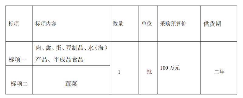 食堂蔬菜食品定點采購項目