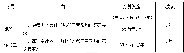每標(biāo)段通過招標(biāo)確定一名中標(biāo)人為浙江衢州公交集團有限公司汽配采購項目底盤及變速器類提供供貨服務(wù)(具體以合同簽訂之日為準(zhǔn))。