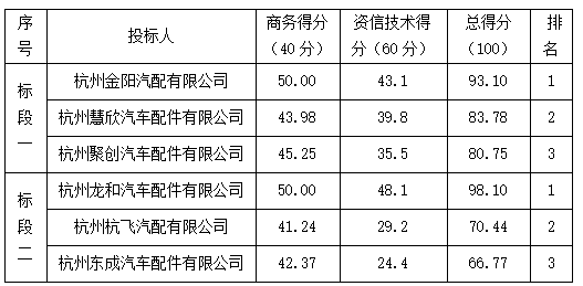 標(biāo)段二中標(biāo)供應(yīng)商名稱:杭州龍和汽車配件有限公司