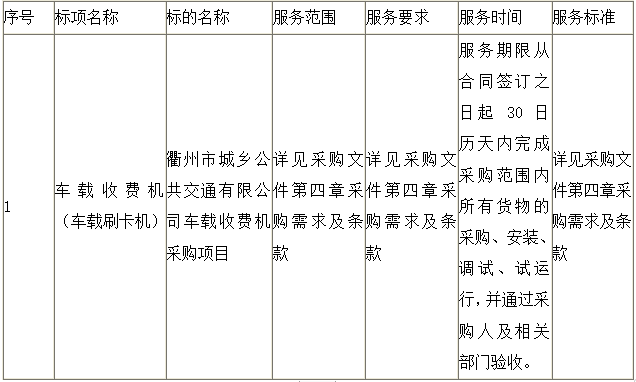 二、項(xiàng)目名稱:衢州市城鄉(xiāng)公共交通有限公司車載收費(fèi)機(jī)采購(gòu)項(xiàng)目