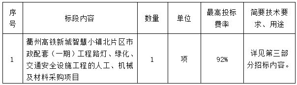 二、項目名稱:衢州高鐵新城智慧小鎮(zhèn)北片區(qū)市政配套(一期)工程路燈、綠化、交通安全設施工程的人工、機械及材料采購項目