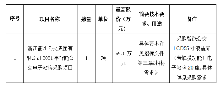 項(xiàng)目名稱:浙江衢州公交集團(tuán)有限公司2021年智能公交電子站牌采購項(xiàng)目
