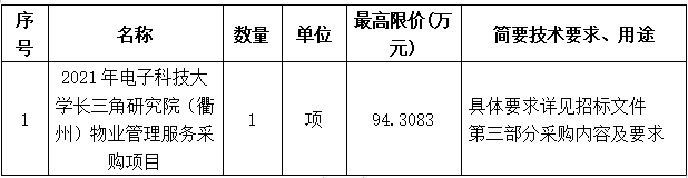 項(xiàng)目名稱:2021年電子科技大學(xué)長(zhǎng)三角研究院(衢州)物業(yè)管理服務(wù)采購(gòu)項(xiàng)目