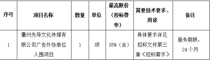 項(xiàng)目名稱:衢州先導(dǎo)文化傳媒有限公司廣告外協(xié)單位入圍項(xiàng)目