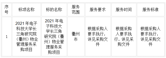 二、項(xiàng)目名稱:2021年電子科技大學(xué)長(zhǎng)三角研究院(衢州)物業(yè)管理服務(wù)采購(gòu)項(xiàng)目