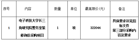 二、項(xiàng)目名稱:電子科技大學(xué)長(zhǎng)三角研究院警務(wù)室裝修詢價(jià)采購(gòu)項(xiàng)目