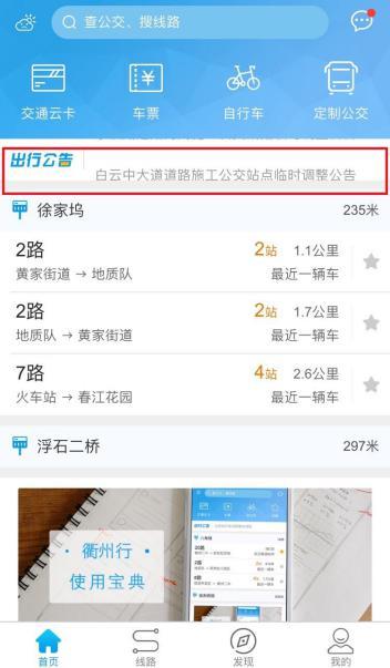 一、衢州行APP。在衢州行首頁(yè)出行公告欄中會(huì)滾動(dòng)彈出查詢公交公司發(fā)布的相關(guān)公告(如下圖),市民可以根據(jù)各自的需求進(jìn)行查詢;