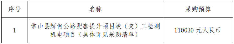 一、項(xiàng)目名稱:常山縣輝何公路配套提升項(xiàng)目竣(交)工檢測(cè)機(jī)電項(xiàng)目