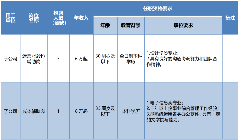 運營(設計)輔助崗3名、成本輔助崗1名。