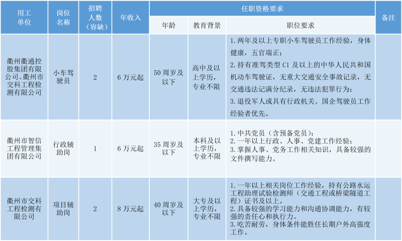 衢州衢通控股集團(tuán)有限公司因工作需要,現(xiàn)面向社會公開招聘5名勞務(wù)派遣工作人員。具體事項(xiàng)公告如下: