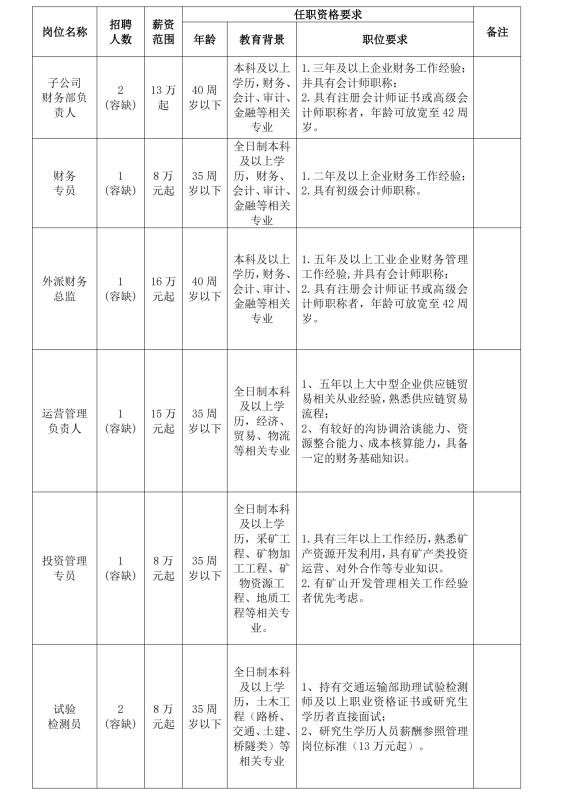根據(jù)集團(tuán)發(fā)展需要,現(xiàn)面向社會(huì)公開招聘16名工作人員,具體工作單位由集團(tuán)根據(jù)工作需要,在集團(tuán)本部和全資子公司之間統(tǒng)籌安排。具體招聘事項(xiàng)公告如下: