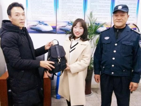 綜合客運(yùn)樞紐公司的保安人員在衢州火車站出站大廳交接班巡查時(shí)發(fā)現(xiàn)一只女式背包,保安人員拾金不昧,將失物完璧歸趙。3月5日晚上,一位旅客在火車站出站通道的衛(wèi)生間里把背包遺落在了洗手臺(tái)上。客運(yùn)樞紐出站大廳保安人員王海耀、方根富在當(dāng)晚交接班巡查廁所